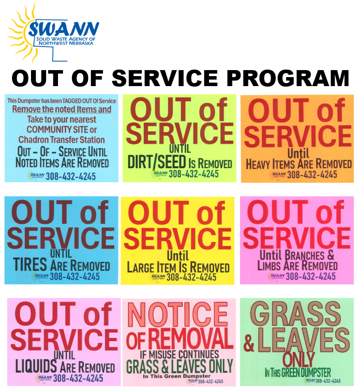 Schedule your Roll-Off Drop Box with Solid Waste Agency of Northwest Nebraska (SWANN). Click here for program info. Click rental button after visiting w/Administration.